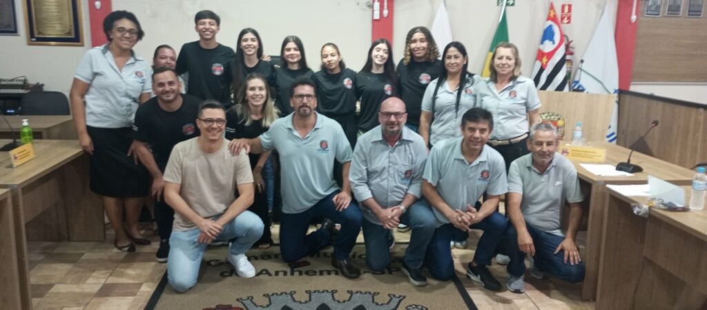 O time de Voleibol feminino Fênix de Anhembi recebeu a Moção n° 08/2025 pela brilhante conquista do 3º lugar na competição de 2025 Conexão Vinhedo. O vereador Thiago Becca foi o autor da proposta e realizou a entrega aos representantes da equipe. A atleta Aline Nascimento, ao fazer uso da palavra, destacou as dificuldades que a equipe enfrentou, incluindo falta de suporte da administração municipal e reconheceu a ajuda de vereadores.