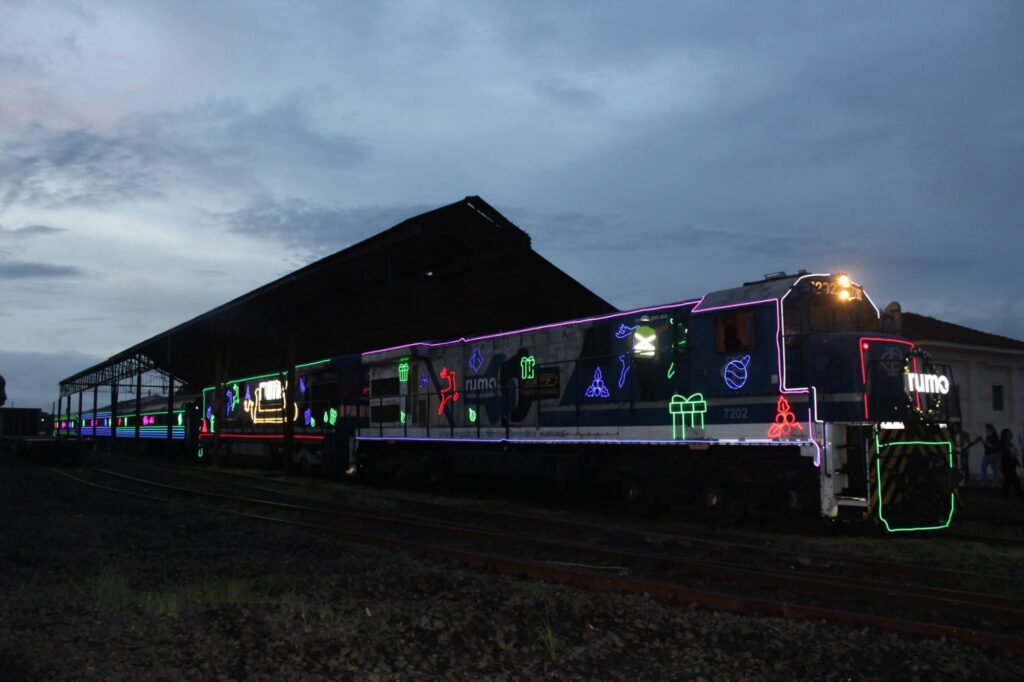 O ponto alto da noite aconteceu a partir das 19h, com o apoio da Rumo Logística, que proporcionou um grande espetáculo com o show do músico Derico e banda, seguido da emocionante chegada do Trem Iluminado de Natal, encantando o público presente e transformando a noite em um verdadeiro espetáculo de luzes e música.