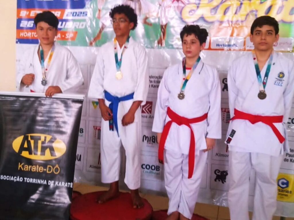 A Associação Torrinha de Karatê (ATK), coordenada pela jovem Rafaela Nicolete, representou o município com garra e conquistou resultados expressivos, reforçando o destaque de Torrinha no esporte regional.