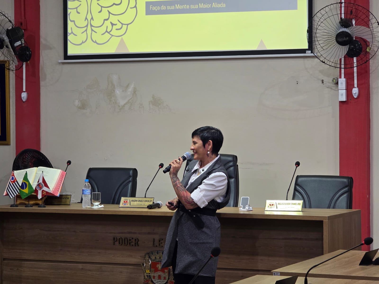 A Câmara Municipal de Anhembi recebeu na noite de quinta-feira, às 19h, a psicanalista Graziela Brizola para a palestra Revolução Silenciosa: faça da sua mente sua maior aliada. O encontro integrou o Programa Escola do Legislativo e marcou as ações do Setembro Amarelo, mês dedicado à prevenção do suicídio.