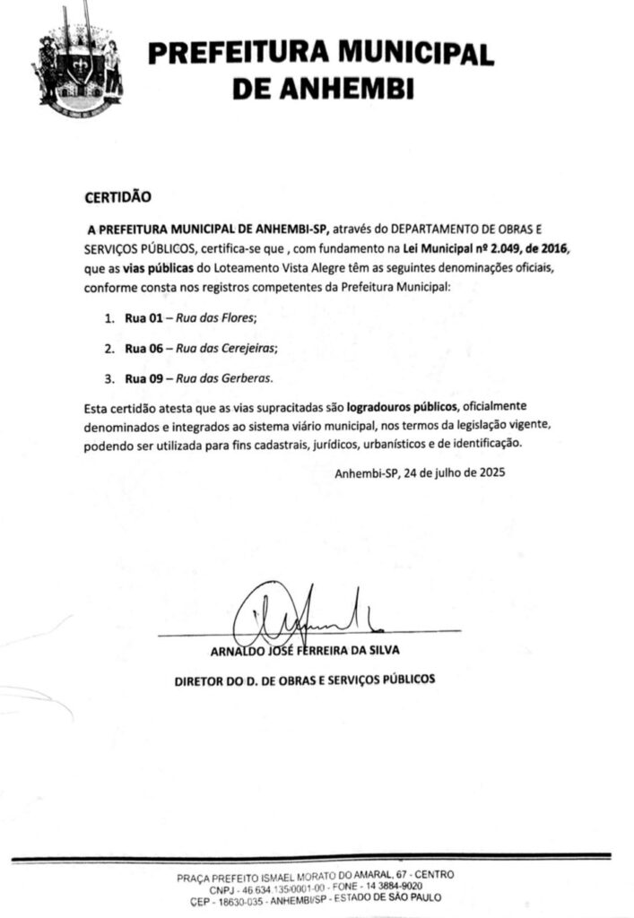 A vereadora mencionou o conteúdo da Lei nº 2.049/16, que denomina as vias públicas do loteamento Vista Alegre. Entre os nomes oficiais, estão Rua das Flores, Rua dos Girassóis, Rua das Acácias, Rua das Violetas, Rua dos Antúrios, Rua das Cerejeiras, Rua dos Lírios, Rua das Gardênias, Rua das Gérberas, Rua das Orquídeas e Rua dos Ipês.