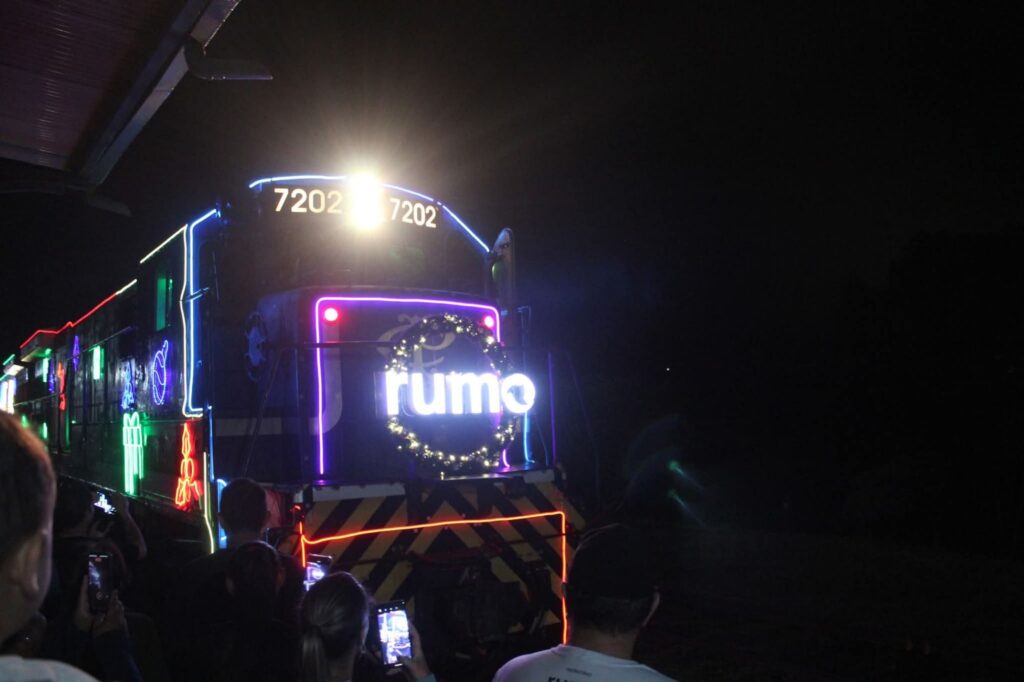O ponto alto da noite aconteceu a partir das 19h, com o apoio da Rumo Logística, que proporcionou um grande espetáculo com o show do músico Derico e banda, seguido da emocionante chegada do Trem Iluminado de Natal, encantando o público presente e transformando a noite em um verdadeiro espetáculo de luzes e música.
