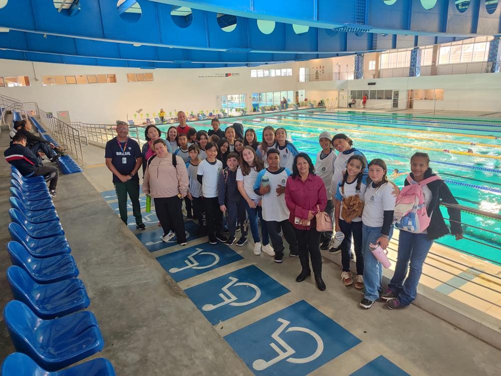 Acompanhados por professores, pelo docente de Educação Física e por monitoras, os alunos participaram de um tour guiado que apresentou o universo do esporte paralímpico — tema que integrou o conteúdo estudado no segundo bimestre. O roteiro incluiu arenas e quadras de modalidades como atletismo, natação, judô, futebol de 5, esgrima em cadeira de rodas e vôlei sentado.