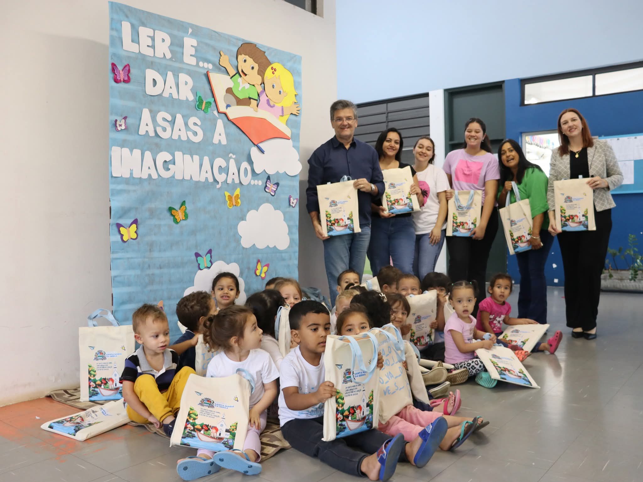 A Prefeitura de Santa Maria da Serra, por meio da Diretoria de Educação, realizou a entrega de sacolinhas literárias a todas as crianças das creches Olívia Pereiro e João Professor, da EMEI Cônego Gilberto e da EMEB Zina Saviolo Cury.