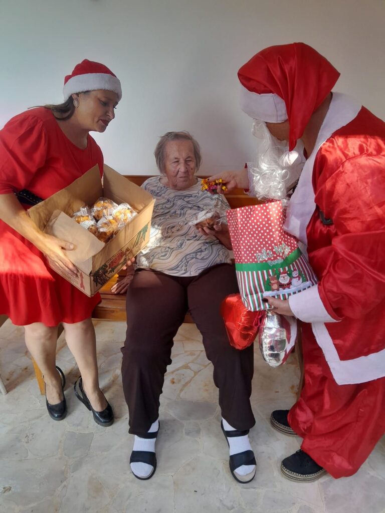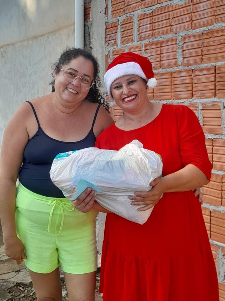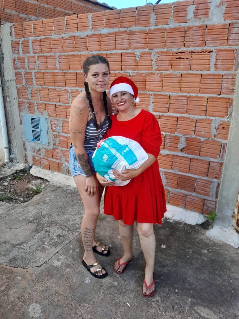 Por meio da liderança local Ana Paula Corrêa, foram distribuídos 200 mini-panetones e 50 cestas básicas, beneficiando moradores da cidade e instituições que acolhem idosos.