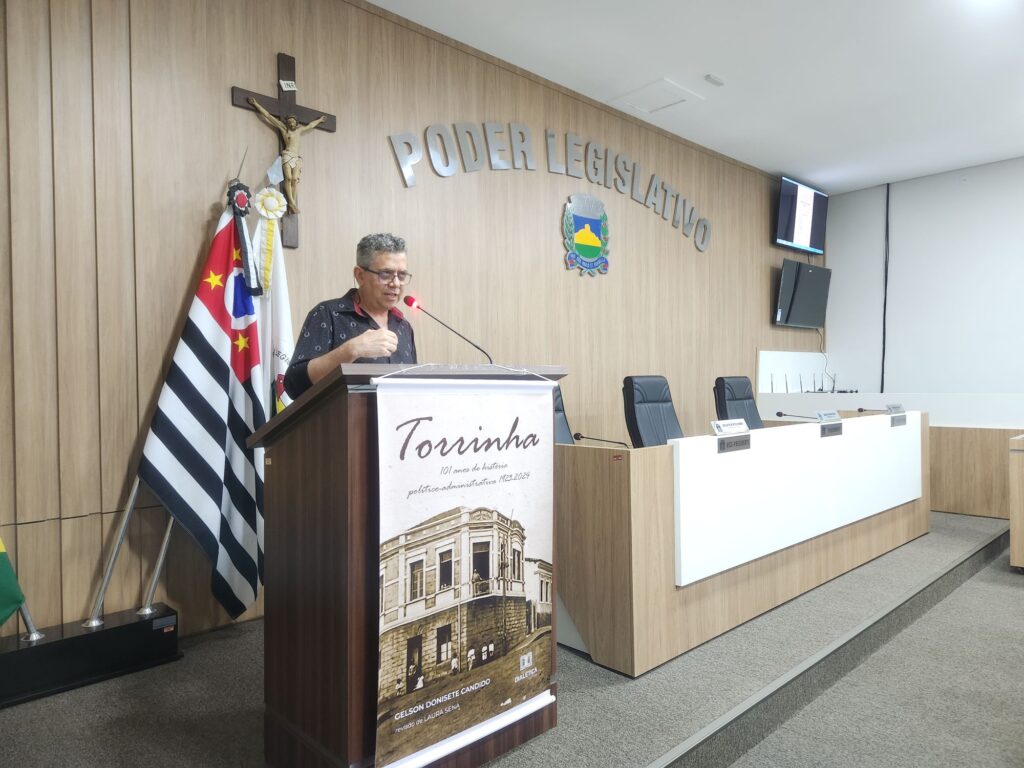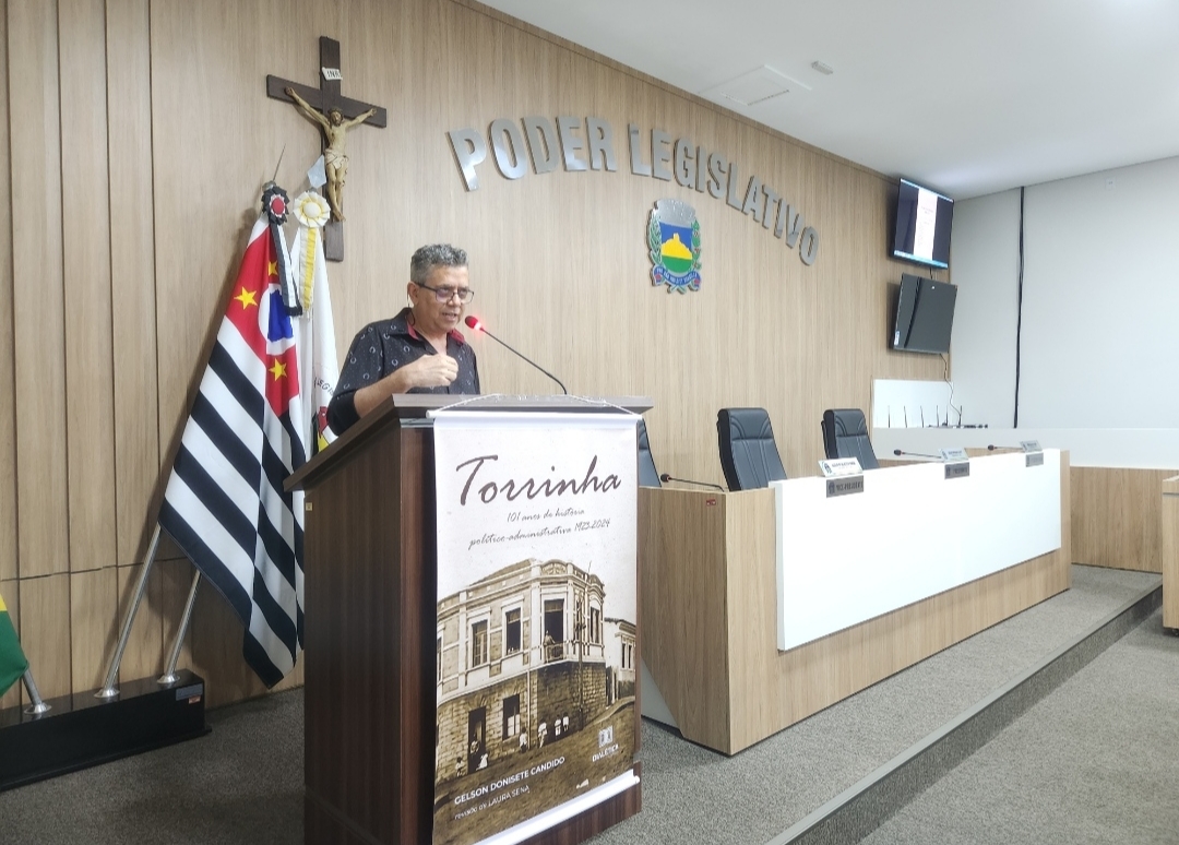 Na noite do dia 15 de outubro, quarta-feira, a Câmara Municipal de Torrinha foi palco de um evento memorável: o lançamento do livro intitulado Torrinha – 101 anos de história político-administrativa (1923-2024), de autoria do professor Gelson Donisete Candido. A obra marca um verdadeiro esforço de pesquisa e preservação da memória local.